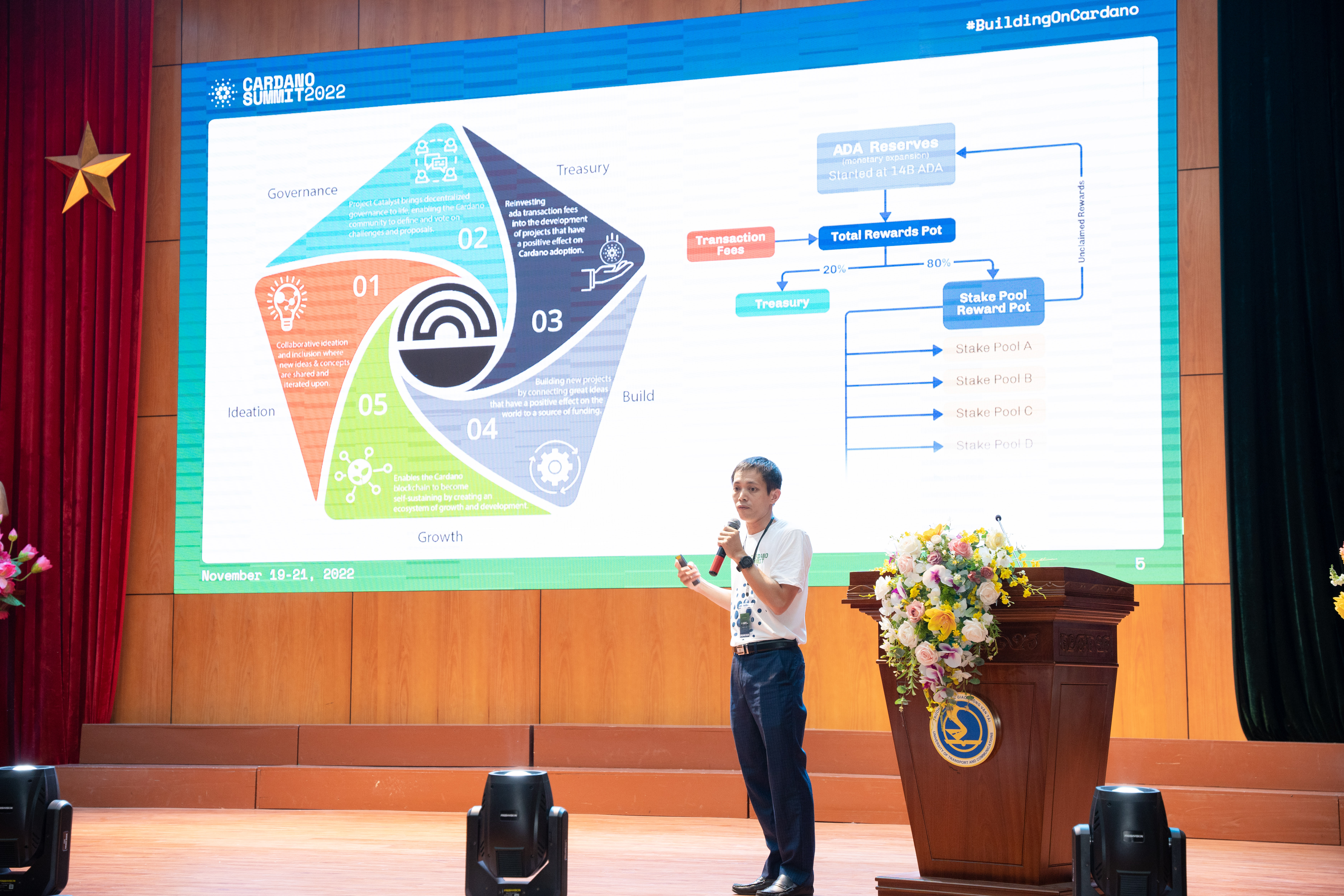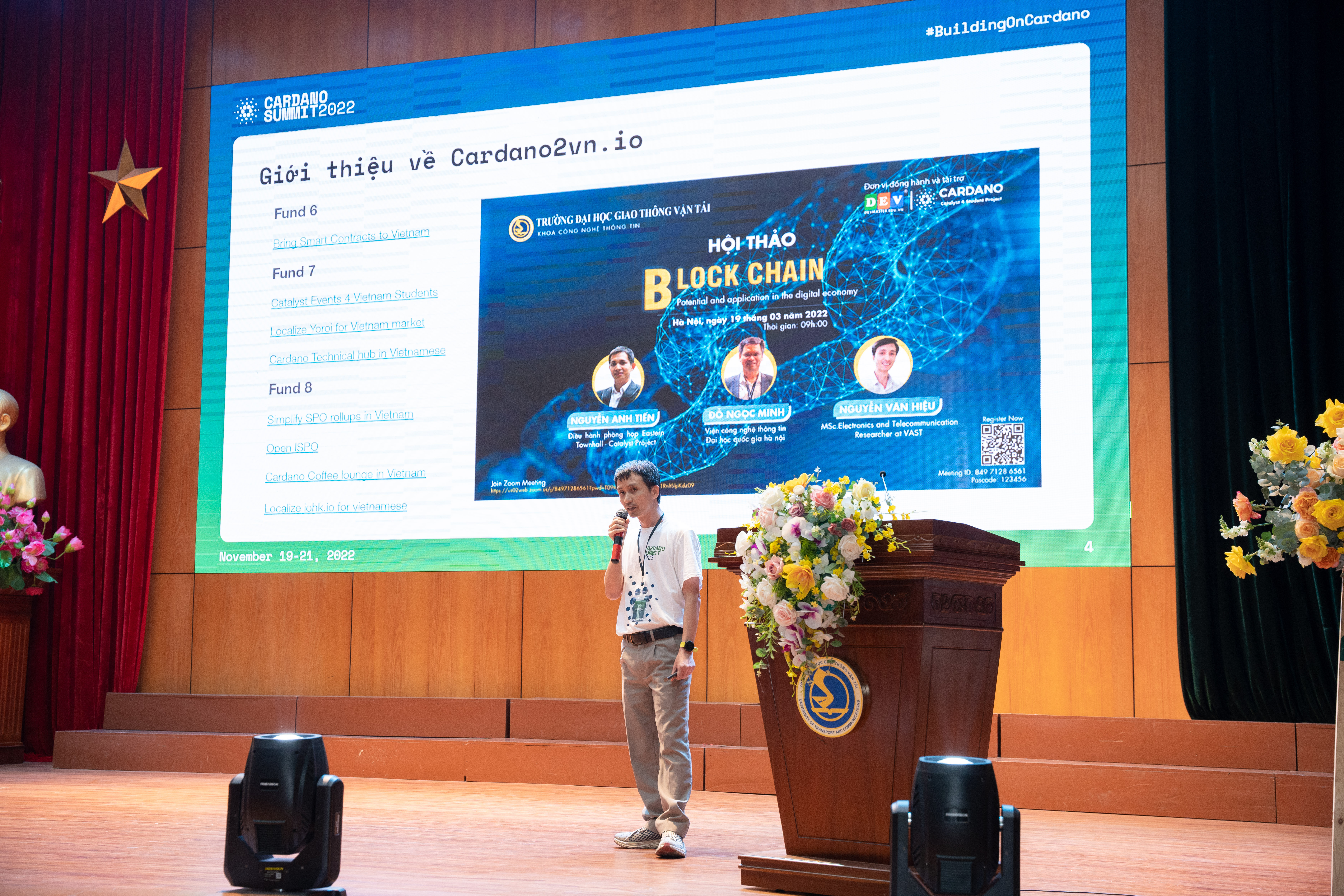 Ngày 21/11/2022 Cardano2vn phối hợp với Khoa công nghệ thông tin - ĐH GTVT và DevMaster tổ chức Cardano Summit 2022. Tham dự hội nghị có hơn 400 đại biểu là các nhà khoa học, các lãnh đạo, giảng viên, sinh viên của các Khoa CNTT đến từ trường: ĐH Giao thông vận tải, ĐH Nguyễn Trãi, ĐH Kinh tế quốc dân, ĐH Phenikaa, ĐH Sư phạm Hà Nội, ĐH Kinh tế kỹ thuật công nghiệp, ĐH Tài nguyên và môi trường, ĐH Thăng Long, Đại học Công nghệ Đông Á, Học viện ngân hàng, các thành viên của 07 dự án được Catalyst cấp vốn và cộng đồng Cardano Việt Nam. Hội nghị được nghe 04 báo cáo của các diễn giả: