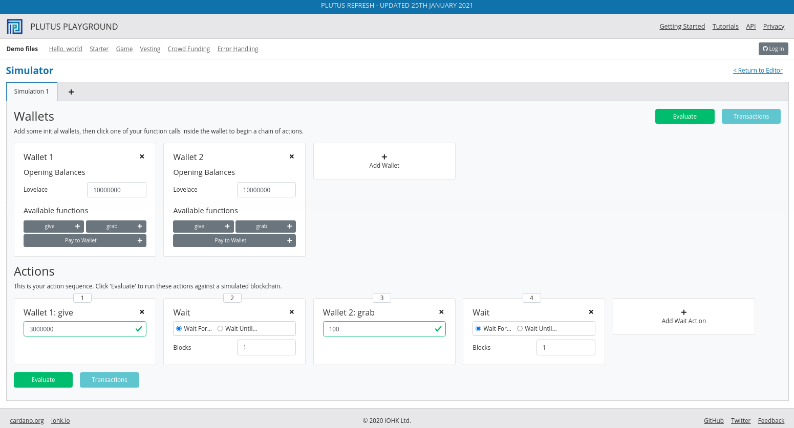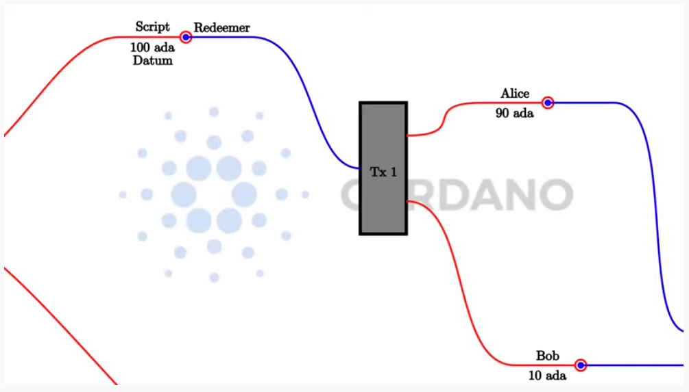 Đây là một điểm thực sự quan trọng, bởi vì những gì bạn phải nhận ra là UTxO trên blockchain chỉ là dữ liệu, chúng hoàn toàn thụ động. Để bất cứ điều gì xảy ra phải có một giao dịch. Để đạt được thay đổi trạng thái của blockchain, phải có một giao dịch mới được gửi sử dụng các UTxO khác nhau và tạo ra các UTxO mới.