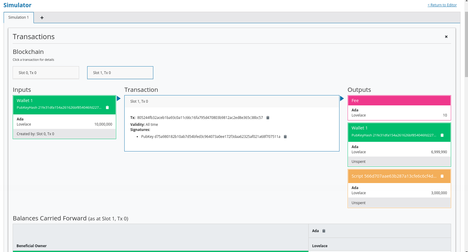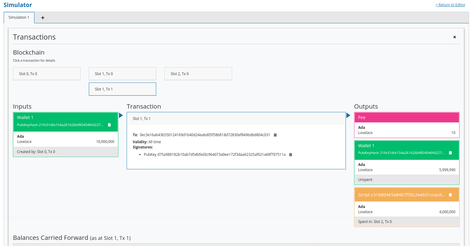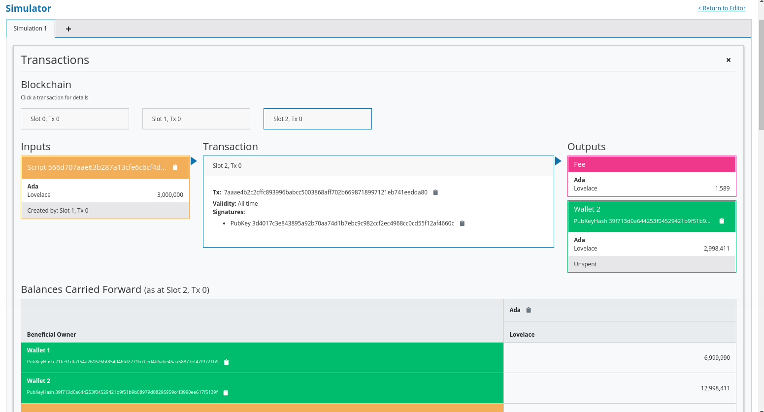 Khi một giao dịch muốn sử dụng UTxO ở một địa chỉ tập lệnh được xác thực bởi một nút, thì nút đó sẽ chạy tập lệnh và sau đó, tùy thuộc vào kết quả của tập lệnh, quyết định xem giao dịch có hợp lệ hay không.