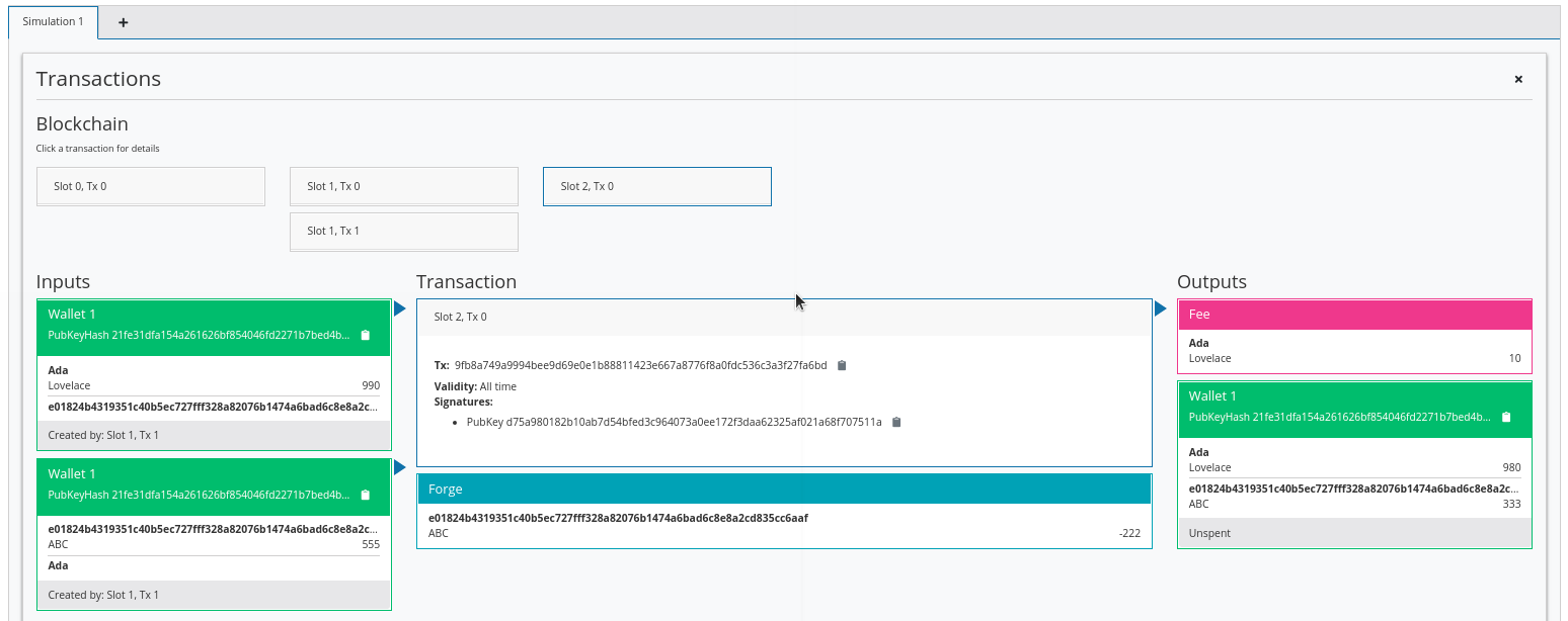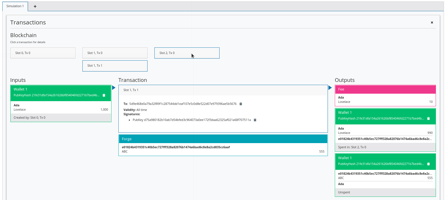 Quy tắc chung, một giao dịch không thể tạo hoặc xóa token. Bất kỳ cái gì có vào cũng có ra, trừ đi phí. Luôn luôn có một số lovelace phải được trả trong mỗi giao dịch. Phí phụ thuộc vào quy mô của giao dịch và số bước mà tập lệnh xác thực thực hiện cũng như mức tiêu thụ bộ nhớ của tập lệnh.