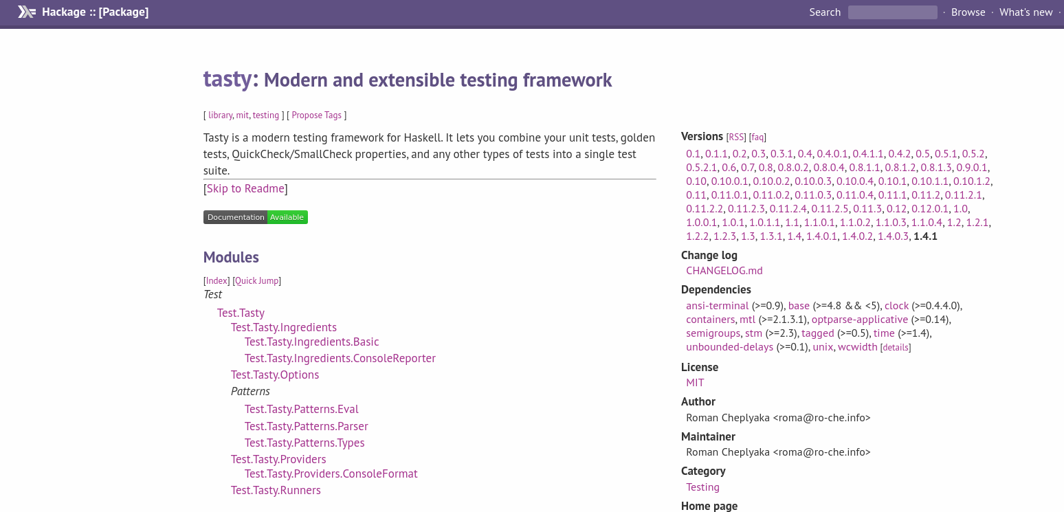 Có một hàm trong thư viện Tasty được gọi testProperty là một trong những đối số của nó, lấy thuộc tính QuickCheck.