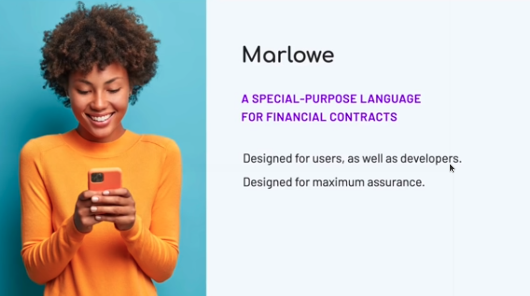 Một trong những ngôn ngữ như vậy là Marlowe. Marlowe là Ngôn ngữ dành riêng cho miền (DSL) dành cho các hợp đồng thông minh.