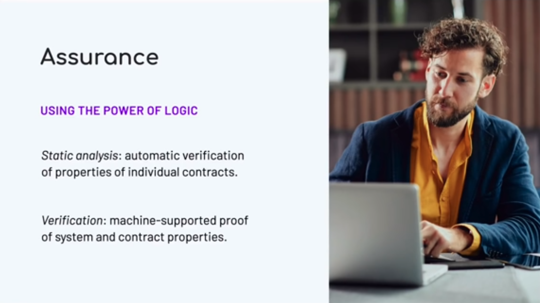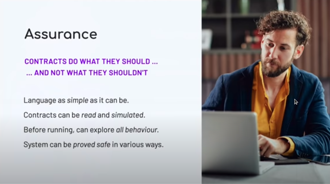 Chúng tôi có thể đưa ra hai loại đảm bảo. Chúng tôi có thể đảm bảo rằng các hợp đồng làm những gì họ phải làm, nhưng chúng tôi cũng có thể đảm bảo rằng họ không làm những gì họ không nên làm. Chúng ta sẽ thấy cả hai khía cạnh của điều đó khi chúng ta tiếp tục.