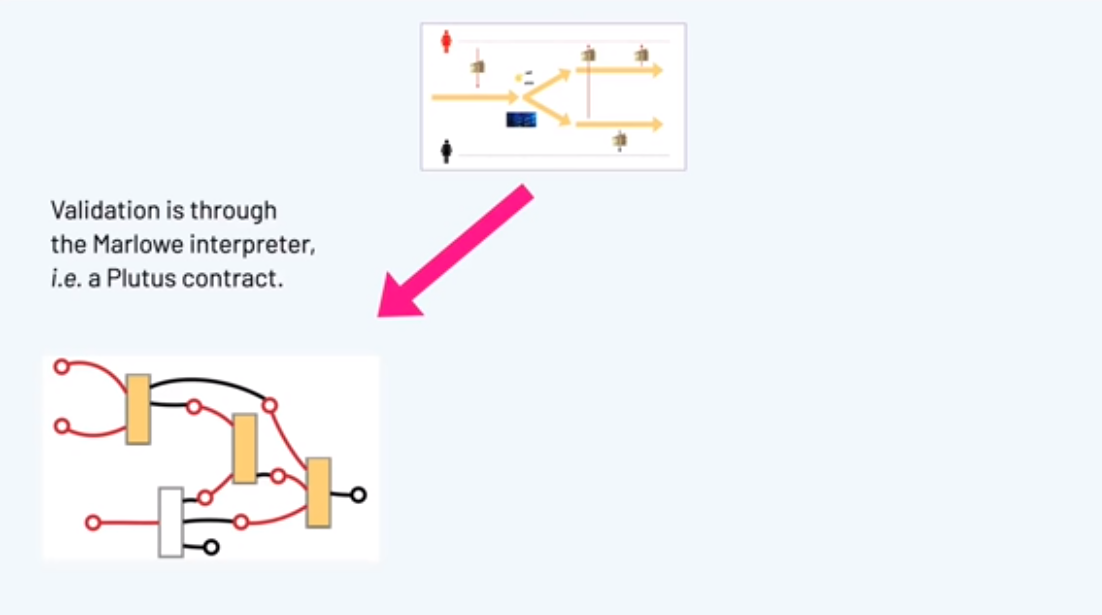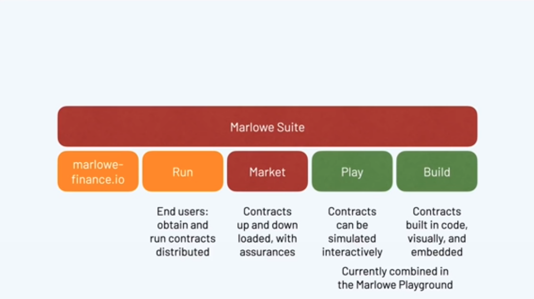 Những gì chúng tôi phát hành rất sớm là nguyên mẫu của Marlowe Run và đây là nguyên mẫu về cách người dùng cuối sẽ tương tác với Marlowe trên blockchain. Ý định của chúng tôi là chúng tôi sẽ cung cấp tất cả các sản phẩm này chạy trên chuỗi khối Cardano khi chúng tôi có hỗ trợ đầy đủ cho việc này, điều này sẽ liên quan đến việc có Phần phụ trợ ứng dụng Plutus và kết thúc ví và cứ thế hoạt động như bình thường.