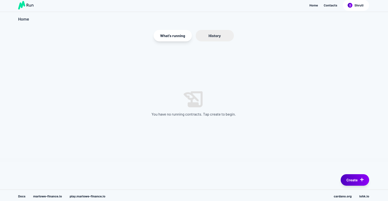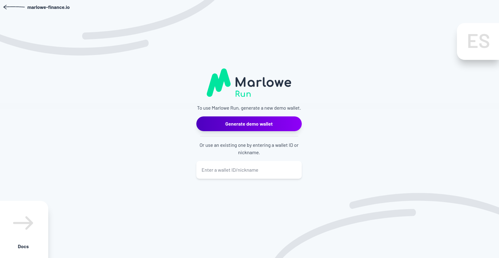 Để tương tác với hợp đồng, ví của bạn cần phải tham gia để kiểm soát chữ ký của bạn và kiểm soát tài sản của bạn, vì vậy chúng tôi liên kết Marlowe để chạy với một ví. Hãy liên kết nó với ví của Shruti. Bạn có thể thực hiện việc này bằng cách tạo một ví demo hoặc bằng cách chọn một ví hiện có.