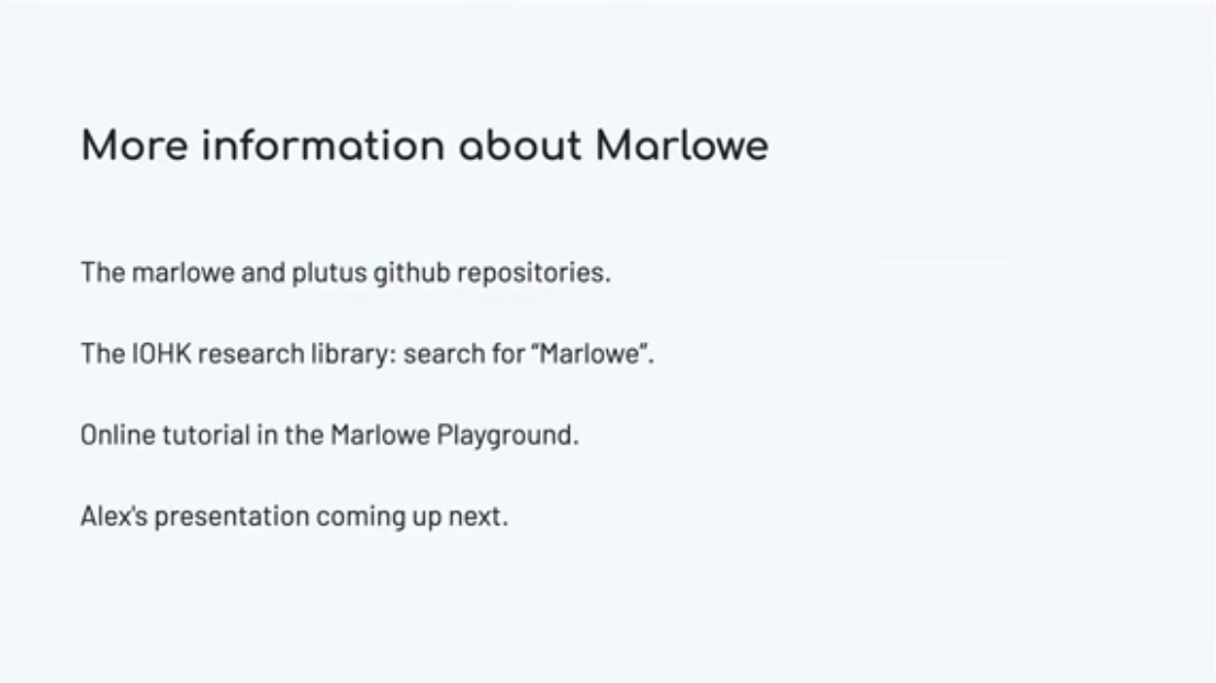 Trong bài giảng này, chúng tôi đề cập đến Marlowe - một ngôn ngữ dành riêng cho các hợp đồng tài chính trên Cardano.