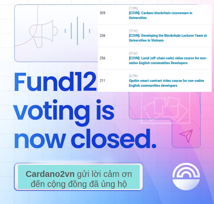 Chúng tôi, C2VN, xin gửi lời cảm ơn sâu sắc đến tất cả các bạn đã dành thời gian và công sức để tham gia vào quá trình bỏ phiếu lần này. Sự ủng hộ của các bạn không chỉ là nguồn động lực to lớn cho chúng tôi mà còn là minh chứng rõ ràng cho sự đoàn kết và sức mạnh của cộng đồng Cardano tại Việt Nam.